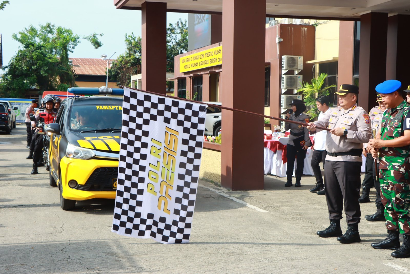 Usai apel, Kapolresta Samarinda bersama para pejabat utama dan tamu undangan melakukan pelepasan kendaraan operasional Pamapta sebagai simbol kesiapan personel dalam mendukung pelayanan publik yang semakin presisi dan responsif.